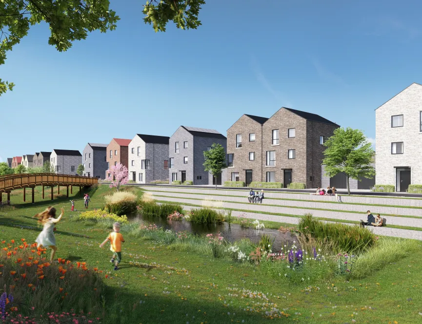 Situated in Cambridge, Timberworks comprises a fantastic collection of one- and two-bedroom apartments, and two, three- and four-bedroom houses. The homes will be centred around a 0.72-acre central park that extends the full length of the development, where residents will have access to green space right on their own doorstep! When complete, the park will also feature various pieces of public art, created by local Cambridge artists, as well carefully considered landscaping to create a serene haven for residents to meet with neighbours or friends; whilst encouraging wildlife and filtering the air.