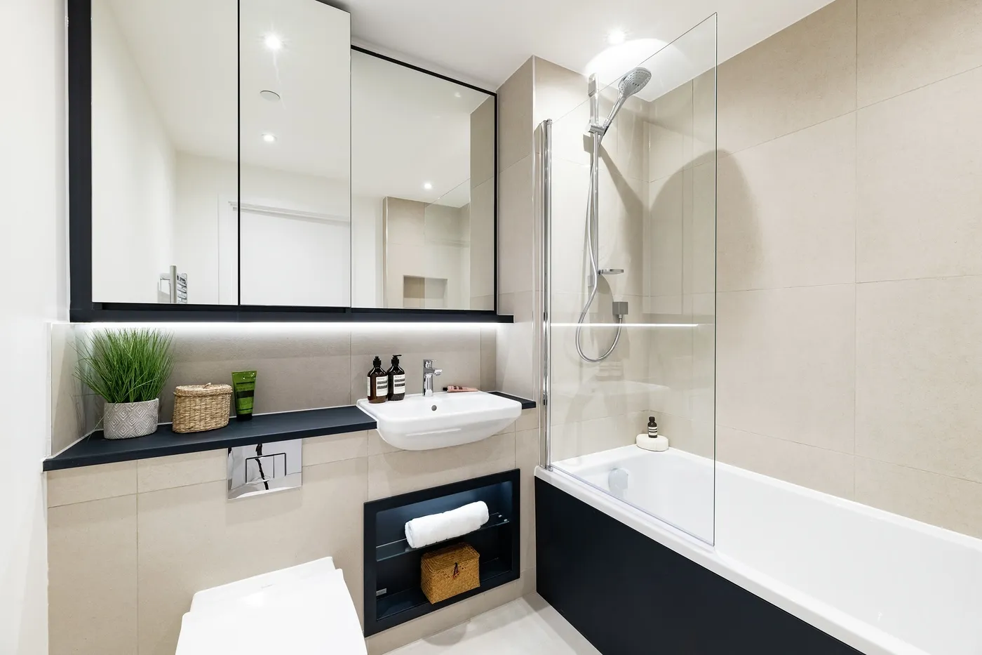 • Bath with shower over and glass screen to bathroom