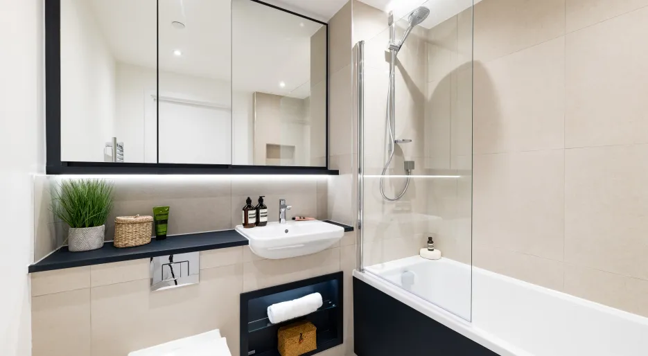 The bedroom features plush carpets offering ultimate comfort and fitted wardrobe. The contemporary bathroom comes complete with modern sanitaryware, feature mirror cabinet with LED lighting and matching bath panel and vanity top to give a touch of elegance and style.