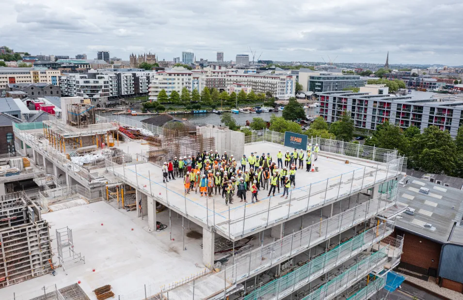 A major redevelopment project forming part of the transformation of Bristol’s historic waterfront reached a key milestone on May 12th with the topping out of McArthur’s Yard.